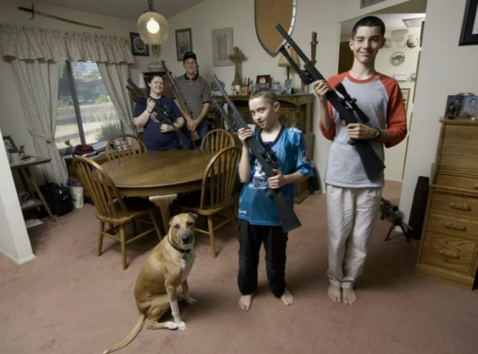 Логичное предположение: у каждого жителя есть оружие. Американские законы позволяют безнаказанно стрелять в непрошеных гостей.