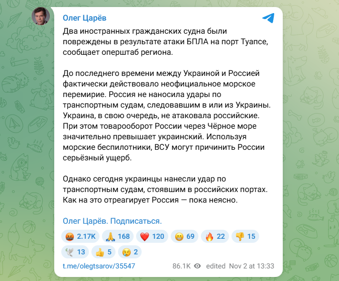 Скриншот: https://t.me/olegtsarov