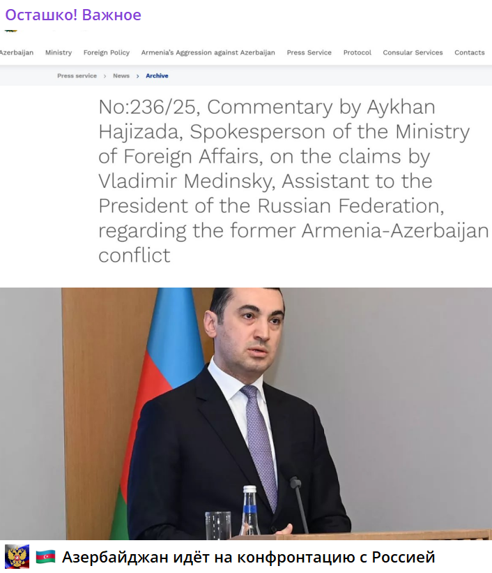 Азербайджан обиделся на Мединского после его слов об Украине: "Не делайте ошибочных заявлений"