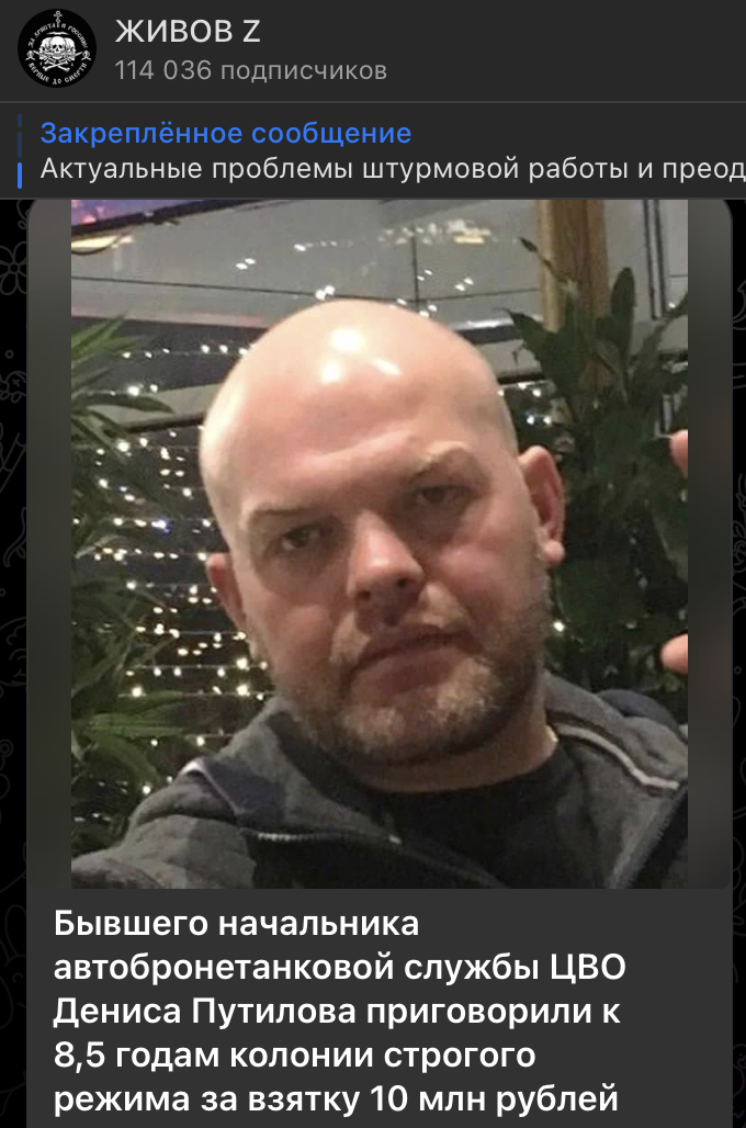 В сентябре прошлого года Следственный комитет России инициировал уголовное дело против генерал-майора Дениса Путилова, начальника автобронетанковой службы Центрального военного округа, по подозрению в получении взятки. Следствие установило, что Путилов получил 10 миллионов рублей от представителя индивидуального предпринимателя Чудинова за оказание преференций в рамках гособоронзаказа.