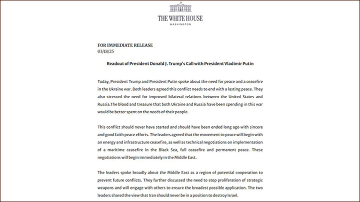 Американский релиз по итогам переговоров. Скриншот с сайта Белого дома