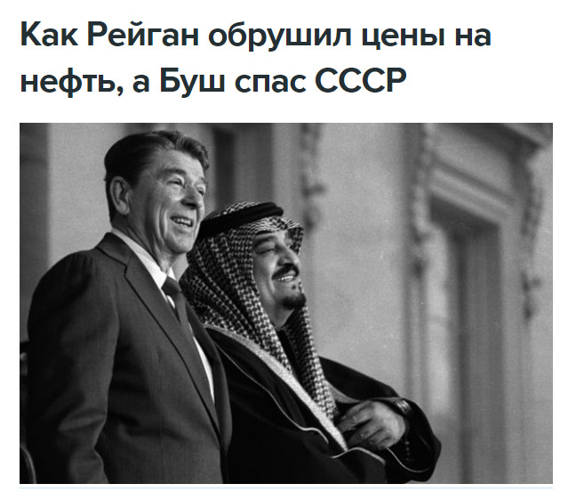 Кроме того, что очевидно, Трамп таким решением хотел повторить знаменитый финт Рональда Рейгана 40-летней давности в части давления на Россию (тогда СССР). В 1970-е и 1980-е годы экономика СССР попала в жёсткую зависимость от мировых цен на нефть и газ. Одним из пунктов плана по удушению СССР стал обвал цен на нефть. И американцам это удалось. Нефтяные котировки обвалились с 32 до 10 долларов. Обновлять страну при дефиците валюты оказалось непросто.