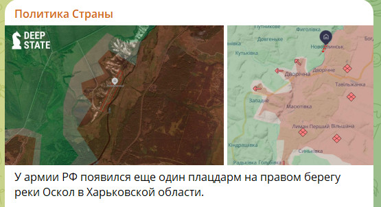 Ранее русские паблики сообщали о расширении плацдарма на правом берегу Оскола (в том числе и в районе Двуречной). Указанные плацдармы могут сыграть огромное значение в купянской наступательной операции.