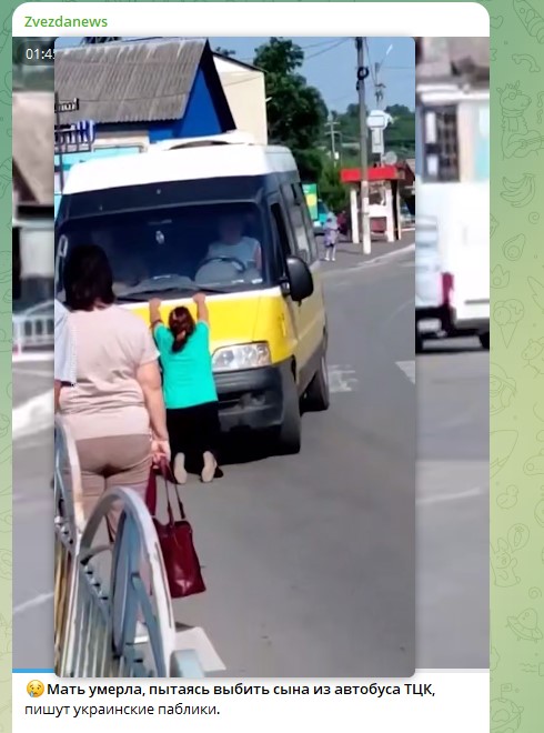 Отметим, что так называемая бусификация нередко заканчивается гибелью как самих "призывников", так и их родных. Трагедии происходят зачастую прямо на глазах у прохожих. В июле трагичные события разыгрались в городе Мерефа Харьковской области. Женщина пыталась отбить у "людоловов" своего сына, однако ей не хватило сил против здоровенных костоломов. На кадрах, снятых очевидцами, видно, как мать схватилась мёртвой хваткой за бусик, в котором увозят её сына, кричит и умоляет отпустить её ребёнка. В какой-то момент из "бусика" выходит один из представителей ТЦК и грубо отпихивает рыдающую женщину в сторону.