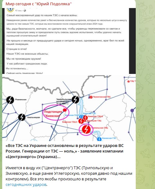 Скриншот: Telegram/Мир сегодня с "Юрий Подоляка"