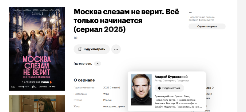 Автор Telegram-канала "Медиакинез" в свою очередь обращает внимание, что создатели нового сериала пытаются всеми силами "спрятать" Бурковского. В трейлере его показывают мельком и со спины, на афишах его имя не упоминается.