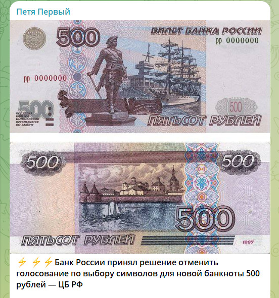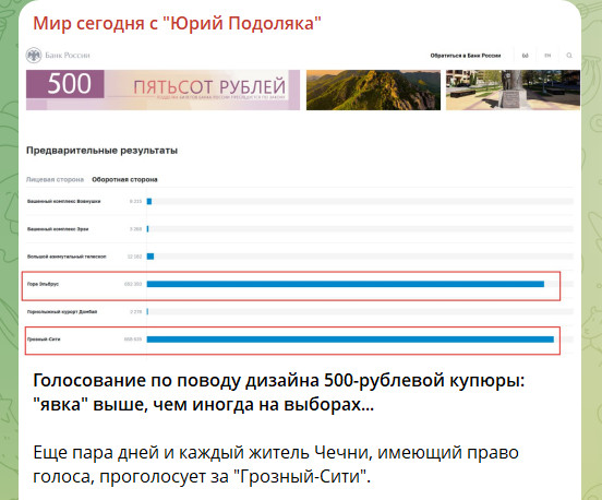 ЦБ опозорился. Пришлось пойти на крайние меры. История с выбором символов для новой банкноты номиналом 500 рублей, задуманная Центробанком как "праздник народного участия", закончилась скандалом и отменой голосования. ЦБ России официально объявил о приостановке конкурса, объяснив это тем, что зафиксировано массовое использование технических средств для накрутки голосов. А ведь Подоляка предупреждал.