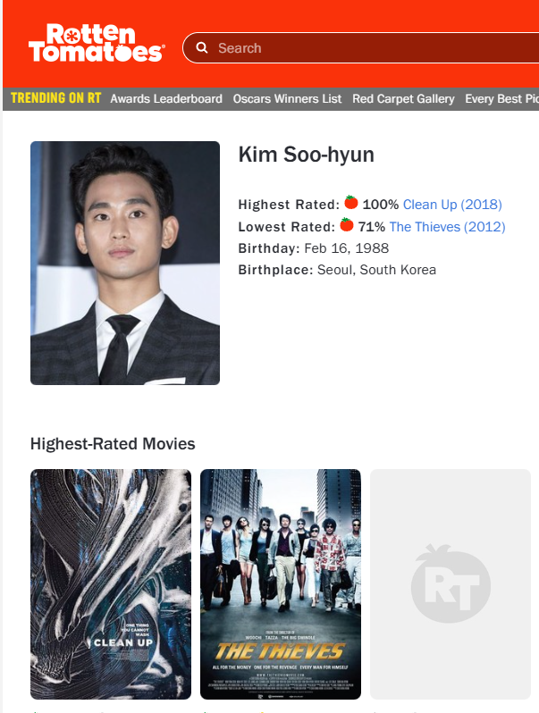 ФОТО: Скриншот карточки Су Хёна на сайте rottentomatoes.com