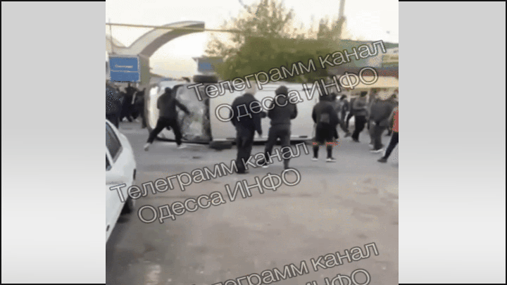 Одесситы на "7-м километре" перевернули микроавтобус ТЦК. Видео с тг-канала Владимира Рогова