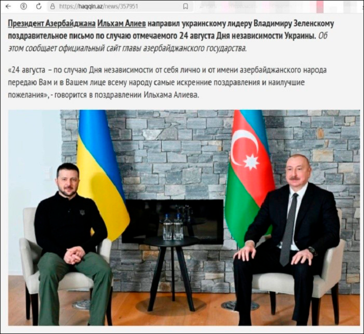 Алиев открыто поддерживает Зеленского. Фото: скрин страницы сайта haqqin.az