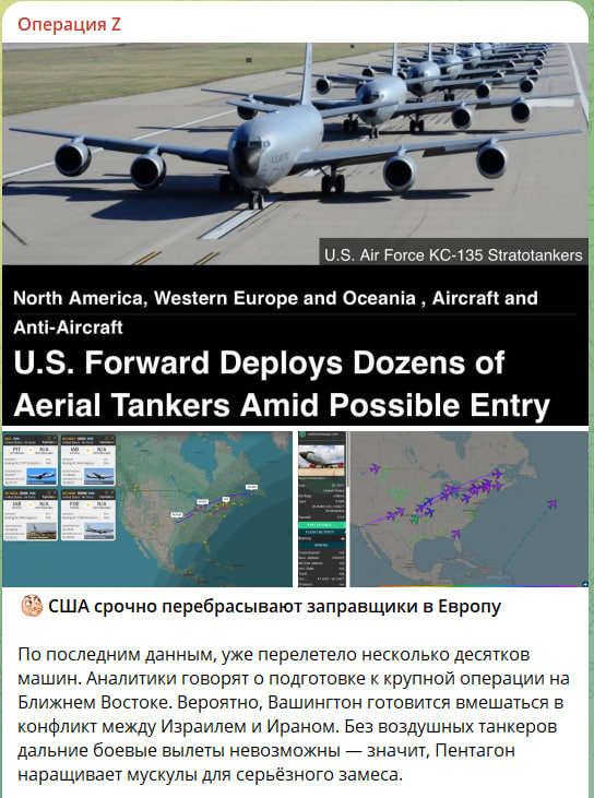 Множество иностранных изданий и OSINTеров сообщили, что не менее 24 самолётов-заправщиков КС-46 и КС-135 ВВС США с континентальной части США выполняют перелёт в Европу.
