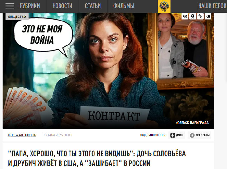 "Папа, хорошо, что ты этого не видишь": Дочь Соловьёва и Друбич живёт в США, а "зашибает" в России Фото: Царьград