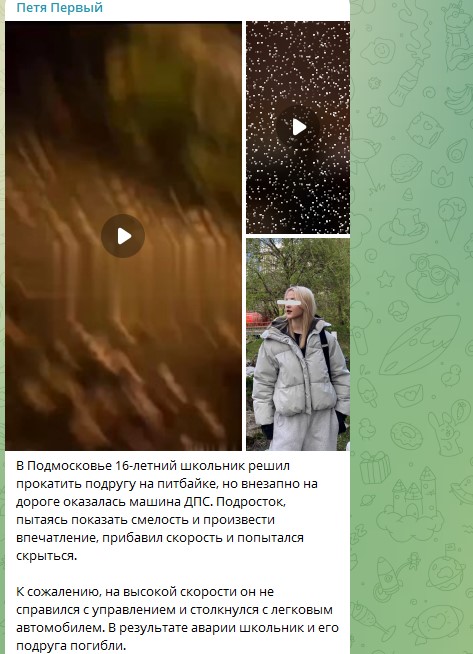 Куча видео из разных городов с целыми колоннами этих питбайков на дорогах общего пользования. И ещё больше видео - где дети бьются на них,
