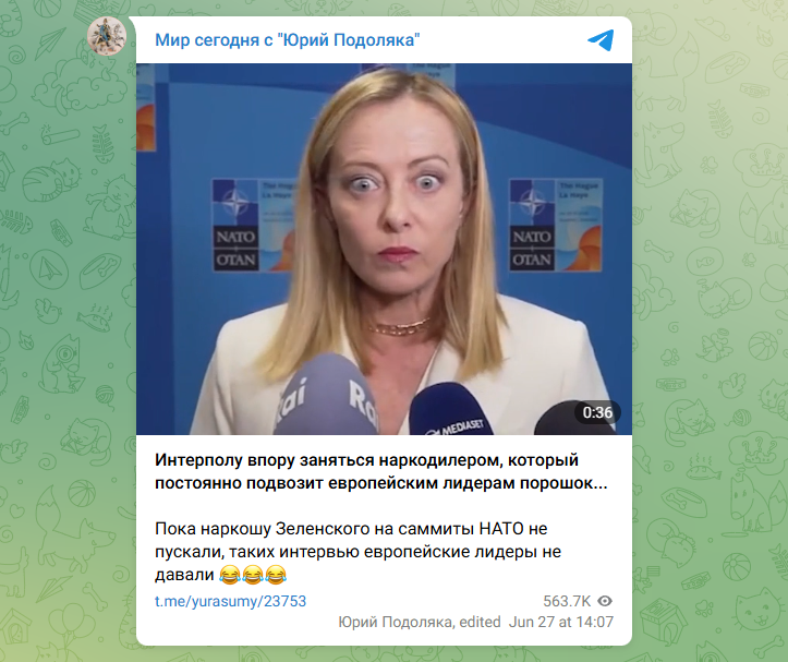 Врач-психиатр Василий Шуров тоже оценил видеоролик со странными ужимками Мелони. Не преминул отметить её расширенные зрачки, странно ускоренную речь.