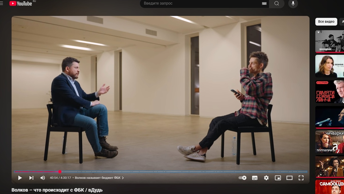 На вопрос интервьюера, не противоречит ли сотрудничество с людьми "с сомнительной репутацией" принципам ФБК**, Волков* ответил в своей манере: "Для меня норм". Как отметили зрители, беседа двух иноагентов больше напоминала допрос.