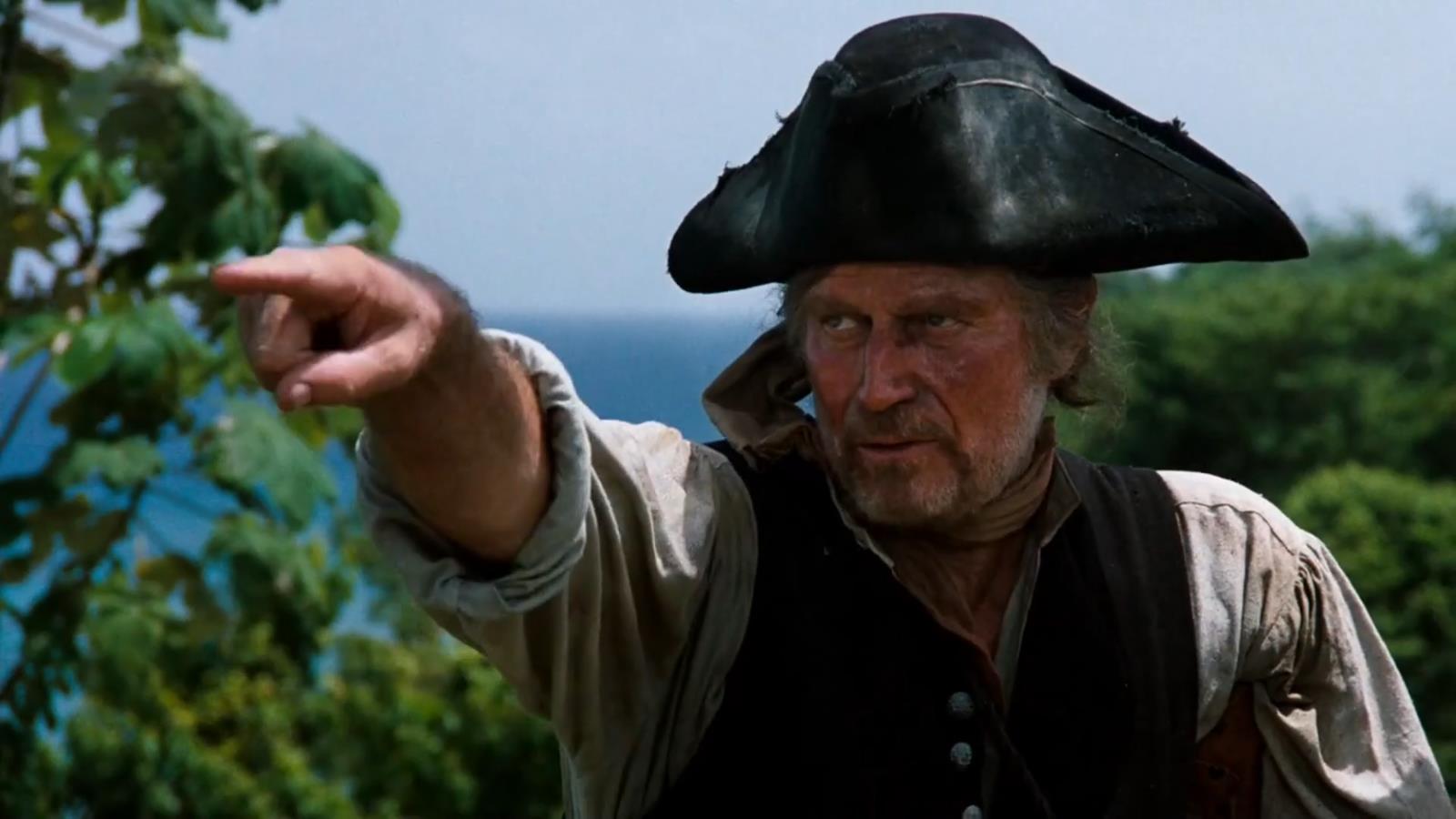 Легенда Голливуда Чарлтон Хестон в образе Джона Сильвера. Кадр из телефильма "Остров сокровищ" (1990, режиссёр Фрейзер Кларк Хестон, Turner Network Television)