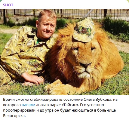 Едва не погибший от нападения льва директор парка "Тайган" вышел на связь: Что сообщил Зубков