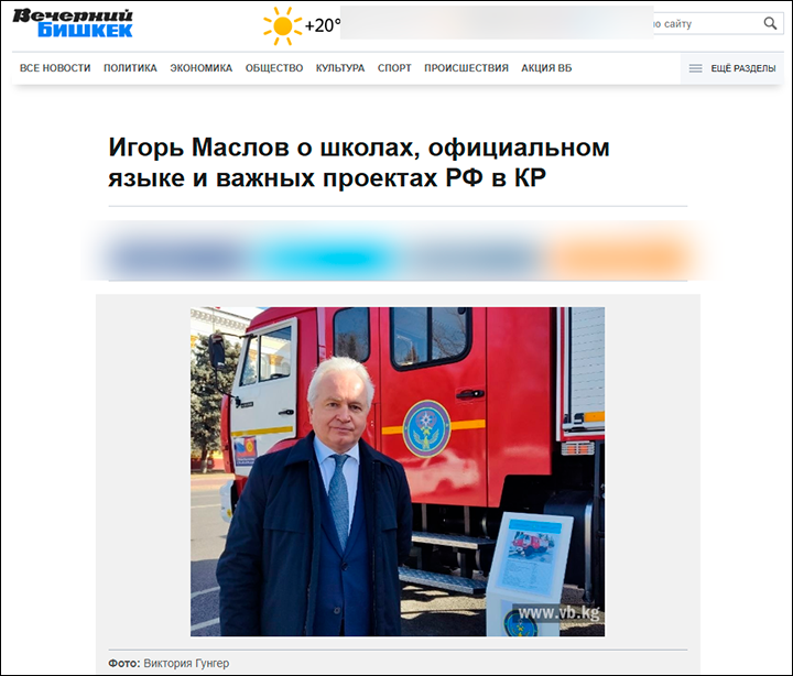 В марте 2023 года начальник управления президента по межрегиональным и культурным связям с зарубежными странами Игорь Маслов в интервью, данном газете "Вечерний Бишкек", рассказывал о возведении наших школ с современными спортивными площадками, компьютерными классами и учебными материалами для киргизских детей. Однако критики вполне резонно указывают, что подобные инвестиции кажутся бессмысленными на фоне проблем в русских регионах, где школы рушатся от ветхости, как это случилось, например, в Татарске (Новосибирская область).