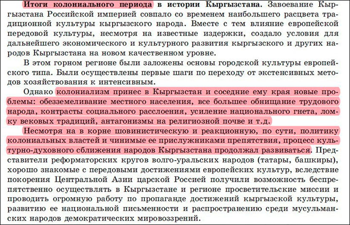 Так преподносят имперский период в учебниках по истории Киргизии. Источник: t.me/historiographe