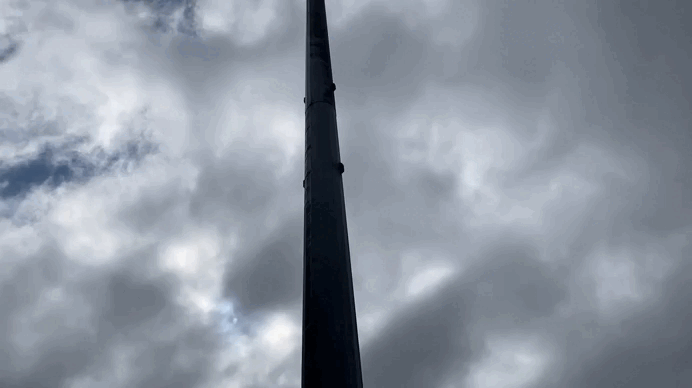 Сняли фонарный столб и с такого ракурса. Чтобы показать: для закрепления флага на нём понадобится спецтехника. Видео: Царьград