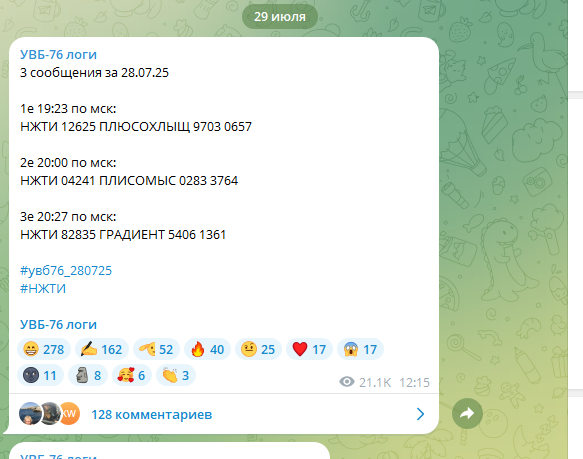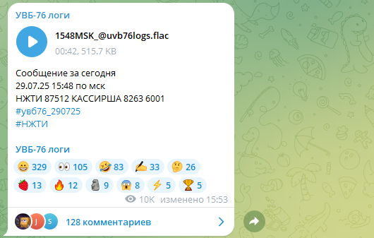 ФОТО: Скриншот https://t.me/uvb76logs