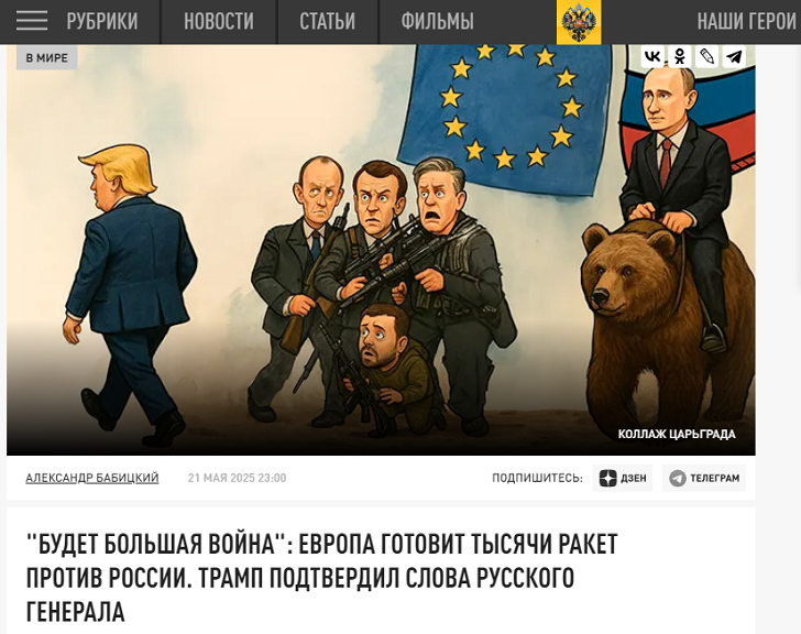 "Будет большая война": Европа готовит тысячи ракет против России. Трамп подтвердил слова русского генерала Фото: Царьград