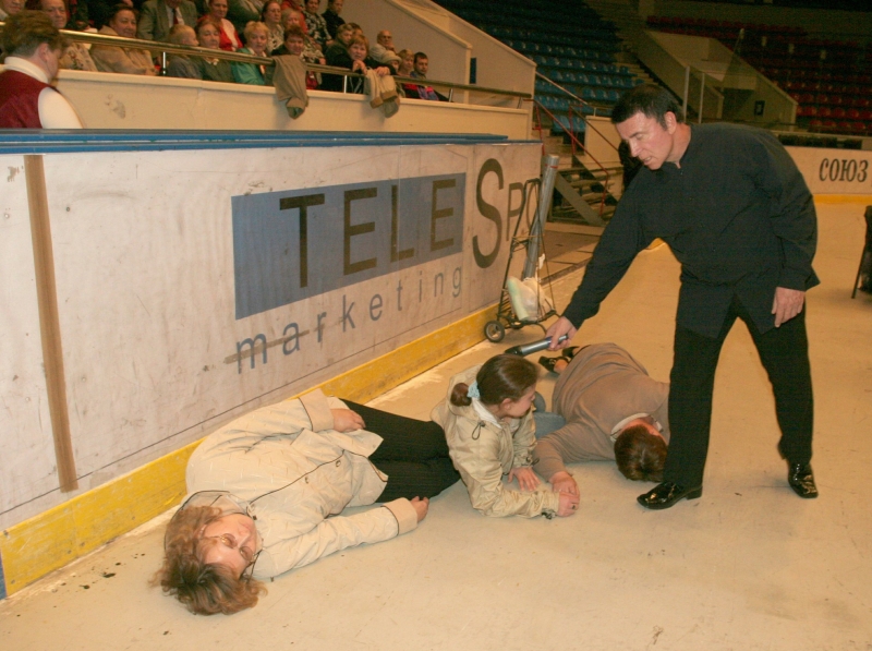 Год назад Кашпировский возобновил свою деятельность в России. Первый московский сеанс собрал около 300 человек. По данным СМИ, он якобы избавлял от седины, рака, аллергии, бесплодия и даже лишнего веса. Метод "лечения" был одинаков для всех: краткая беседа, человек падает на пол - и, как заявлял "целитель", человек здоров.