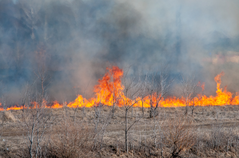 Мужчина сетует: площадь возгорания очень большая. Это характерно для природного пожара.