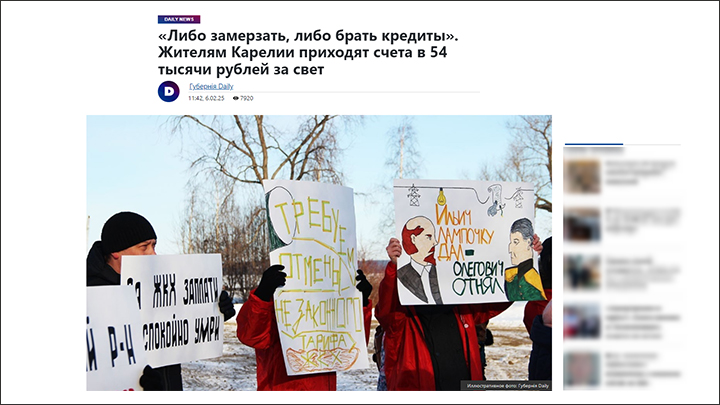 Жители Карелии вышли на акцию протеста против роста тарифов на электроэнергию // Скриншот страницы сайта gubdaily.ru