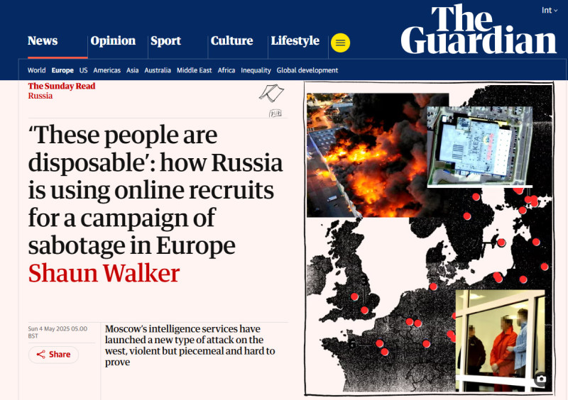 Разведывательные службы России в лице легендарного ГРУ начали новую атаку на Запад. Жестокую, но разрозненную и труднодоказуемую. Очередное феерическое обвинение в духе "хайли лайкли, это русские" опубликовала британская The Gardian. Журналист "накопали", как Россия использует различных граждан для проведения диверсионных кампаний в Европе. Одним из таких "диверсантов" стал украинский "ухилянт". По версии британского медиа, его "весьма вероятно" завербовали" русские спецслужбы.