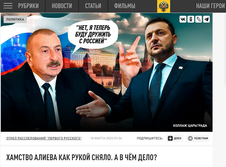 После сцены в Овальном кабинете контакты с Зеленским уже не считаются сигналом лояльности к США. Скорее, наоборот. Теперь новый "тренд" - налаживание отношений с Россией. Чем, собственно, Алиев и занимается. По словам Андрея Пинчука, Баку и Ереван выразили готовность пойти на мировую. А это, в свою очередь, решает вопрос с Зангезурским коридором, который волнует Россию и Армению.