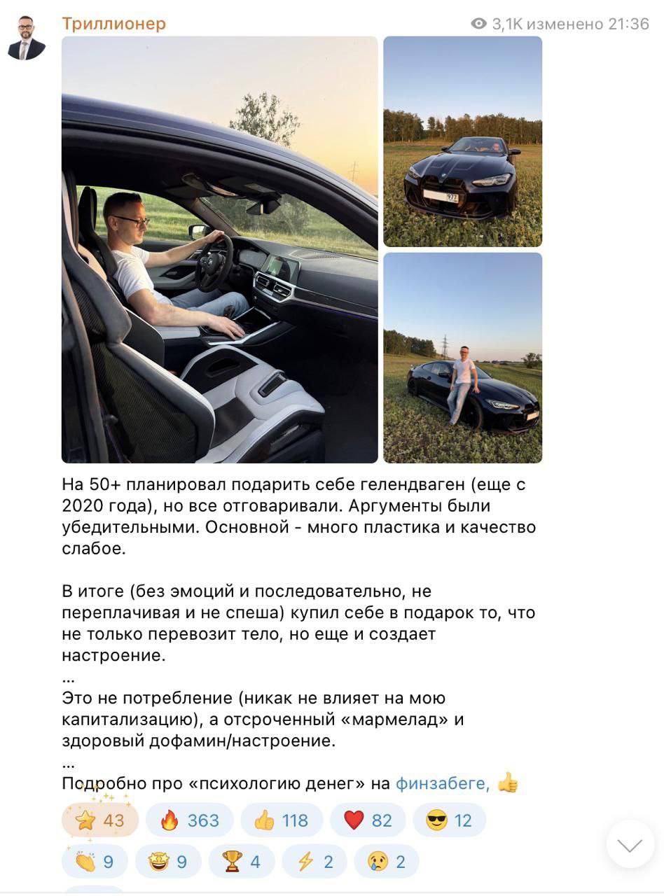 Функционер Духовного управления мусульман (ДУМ) РФ Шамиль Аляутдинов, который ранее оказался в центре скандала из-за финансовых махинаций с гастарбайтерами, недавно похвастался новым автомобилем - BMW M4 Competition Coupe стоимостью около 10 миллионов рублей. В своём посте он отметил, что решил порадовать себя "отсроченным мармеладом".