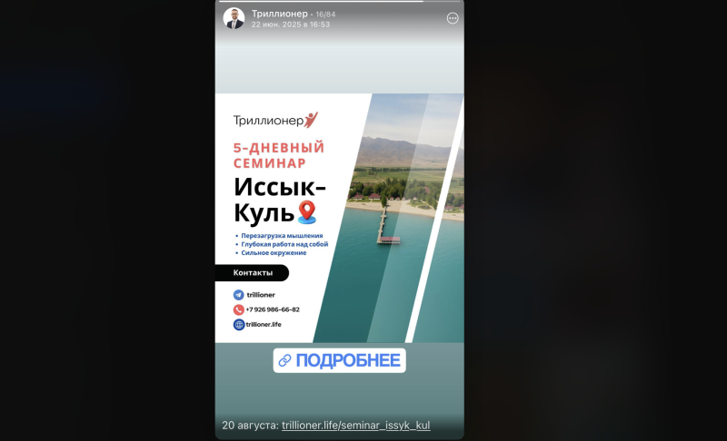 Вместе с супругой Зилей он предлагает туры на Иссык-Куль и даже индивидуальное наставничество для "результативных людей".