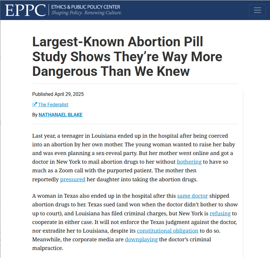 ЗАГОЛОВОК: КРУПНЕЙШЕЕ ИССЛЕДОВАНИЕ ТАБЛЕТОК ДЛЯ ПРЕРЫВАНИЯ БЕРЕМЕННОСТИ ПОКАЗАЛО, ЧТО ОНИ ГОРАЗДО ОПАСНЕЕ, ЧЕМ МЫ ДУМАЛИ ФОТО: СКРИНШОТ СТРАНИЦЫ САЙТА EPPC.ORG