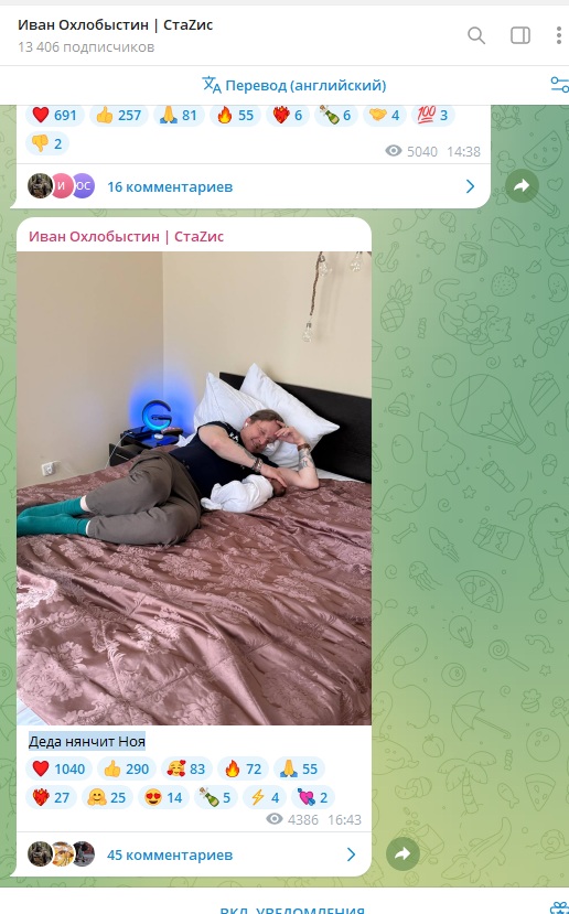 Актёр, общественный деятель, временно отошедший от служения священник Иван Охлобыстин снова стал дедушкой. На свет появился внук, малыша зовут Ной. И сегодня Охлобыстин впервые показал крохотного мальчика.