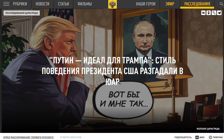 "Путин - идеал для Трампа": Стиль поведения президента США разгадали в ЮАР Фото: Царьград