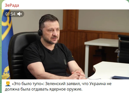 Но в украинском обществе сегодня внедрен очередной симулякр, состоящий из ложных нарративов, таких как: у Украины было СВОЁ ядерное оружие, его отдал русским плохой Кучма, будапештский меморандум должен был работать в отрыве от внеблокового статуса. "Тупо", что Зеленский не знает всю эту матчасть. Или делает вид, что не знает.