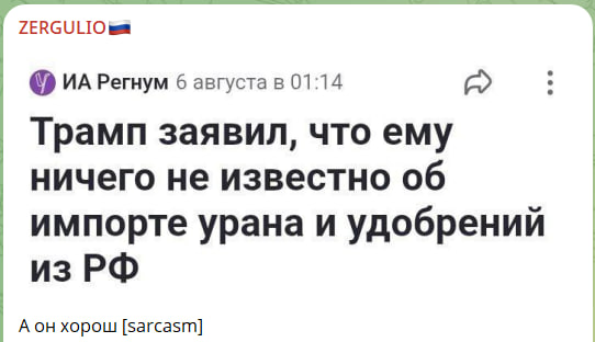 Трамп вышел из украинского кейса, он для него на десятом месте. Вопрос лишь в цене и на что разменять. Китай, Россия и США - эти три страны держат в руках основные ключи. Трамп решил грабить Индию, ЕС плюс другие страны по мелочи, как в игре в напильник: прирезаешь то, до чего дотягиваешься. А с остальным миришься - если не твоё точно, значит и рисковать не надо. Известная осторожная бизнес-модель,
