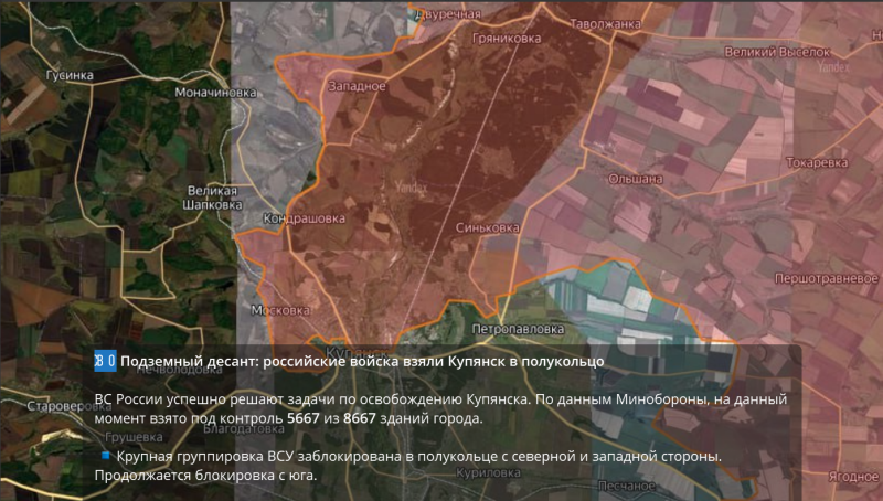 Подоляка прокомментировал сообщение Минобороны России, в котором говорилось об успехах при штурме Купянска. Согласно официальным данным, русские военные смогли взять под контроль 5667 из 8667 зданий в Купянске и заблокировать крупную группировку сил противника.