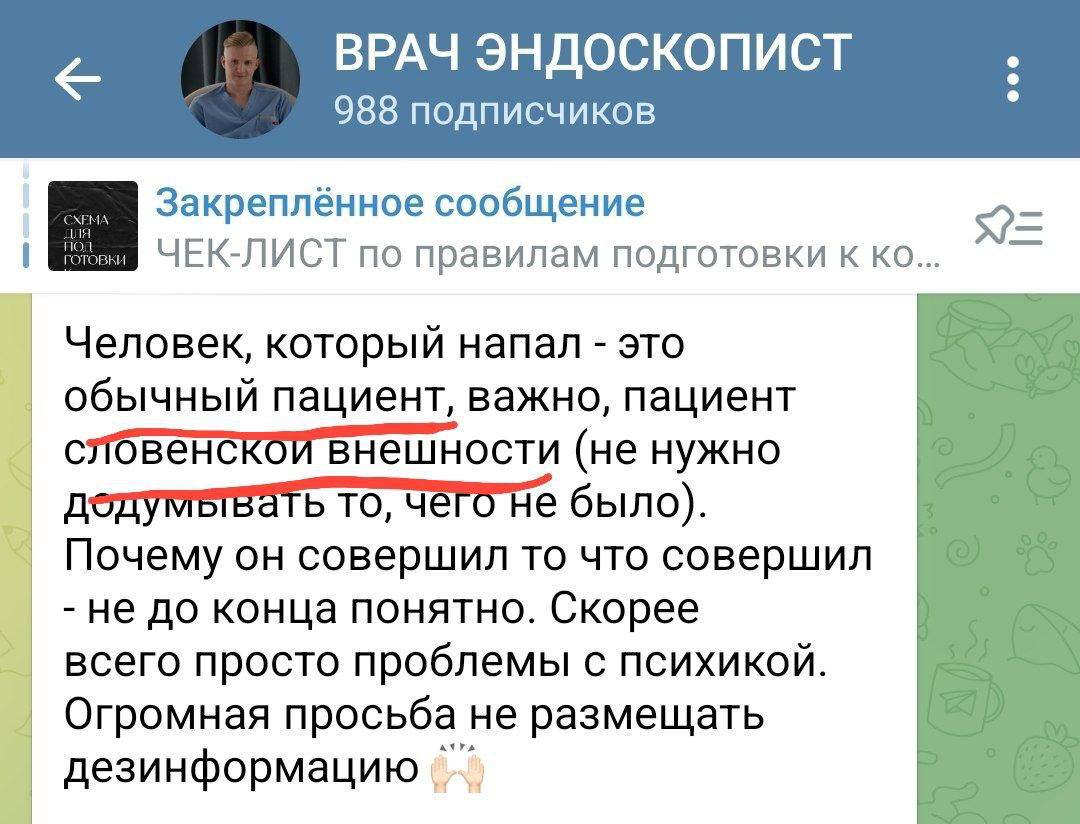 Человек, который напал, это обычный пациент, важно, пациент славянской внешности (не нужно додумывать то, чего не было).