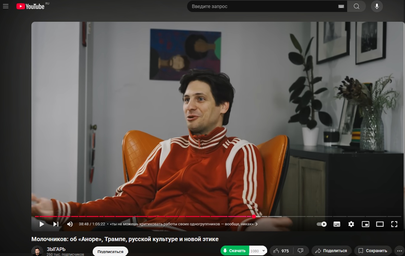 Кстати, на этом моменте дискуссии о странной системе образования в США Зыгарь* попытался всё переиграть. Сказал: "Может быть, ты просто привык жить в системе, где насилие - это нормально?" (это о России, да-да, и под насилием он понимает критику при обсуждении режиссёрских работ). Но Молочников, как ни странно, не поддался: "Есть разница между насилием и здравой критикой".
