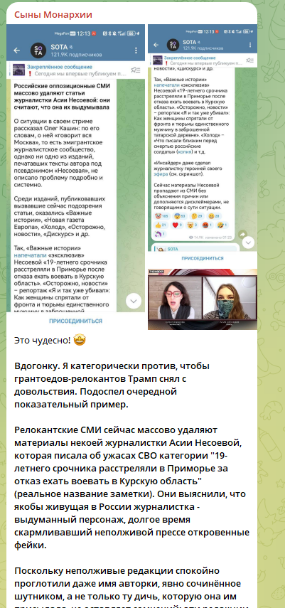 И вот выяснилось, что Несоевая - результат пранка. От её имени выдавались материалы, которые были попросту выдуманы.
