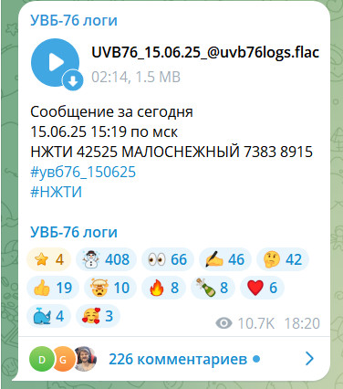 Русская радиостанция УВБ-76, которую также называют "Радиостанцией Судного дня", снова передала таинственное сообщение. "Жужжалка", начавшая периодическое вещание в далёком 1976 году, 15 июня на фоне нового витка эскалации конфликта между Ираном и Израилем передала зашифрованный набор цифр и букв с загадочным "МАЛОСНЕЖНЫЙ". "Это про Ближний Восток!", - уверенно "расшифровывают" послание пользователи в соцсетях.