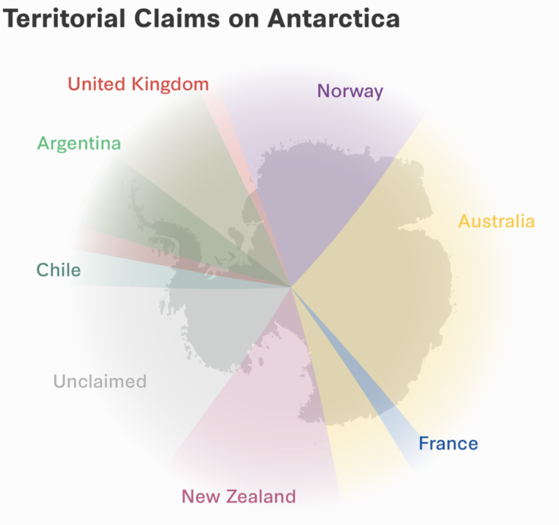 В статье утверждается, что в марте 2025 года Китай и Россия объявили о раздельных, но скоординированных планах по укреплению и расширению своего присутствия в Антарктике. В том же месяце Соединённые Штаты объявили о сокращении финансирования своей флагманской станции на Южном полюсе. Эксперты не очень понимают, почему США сократили своё присутствие, учитывая новые заявления двух государств.