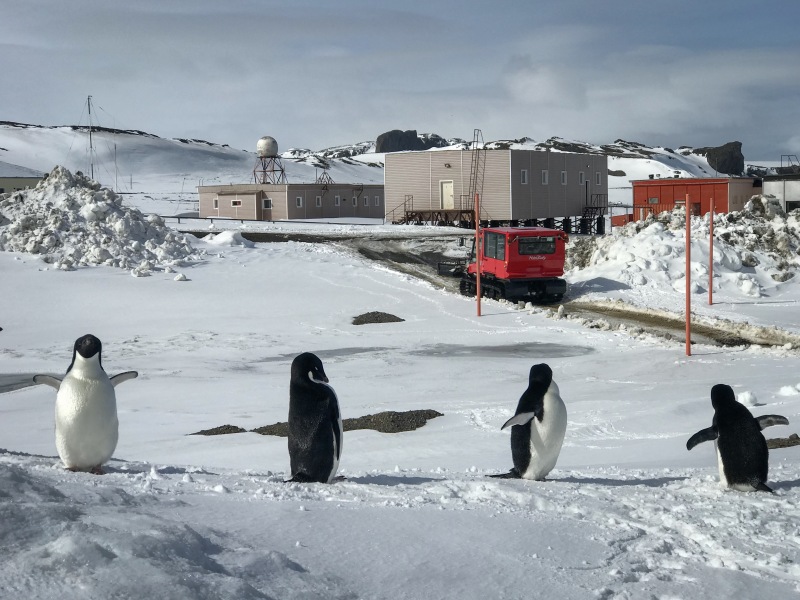 Станция "Беллинсгаузен" и пингвины. Скриншот с сайта aari.ru