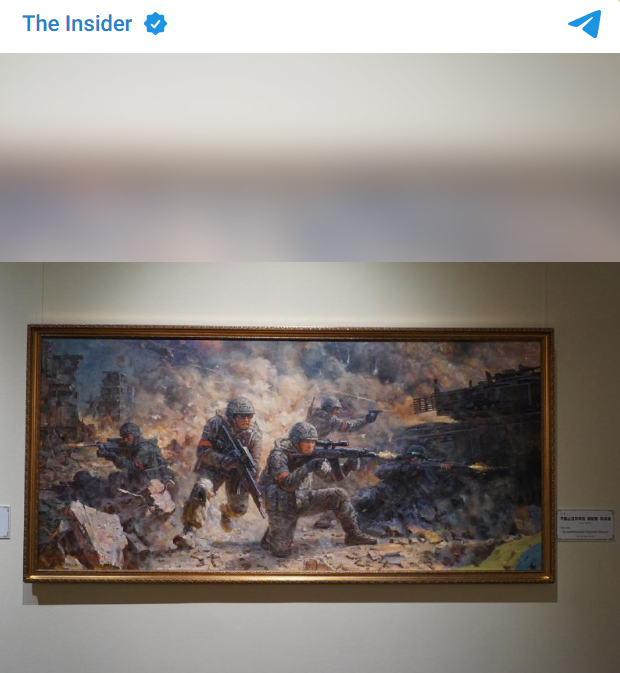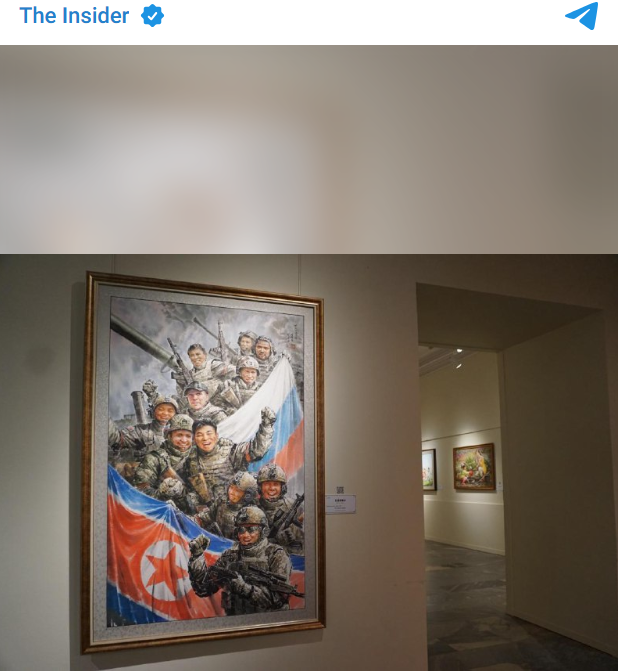 Одна из картин особенно выделялась на общем фоне. На ней изображены обнимающиеся русские и корейские солдаты, которые держат флаги своих стран и улыбаются. Это напоминание о бойцах армии КНДР, которые прибыли в Россию и помогали русским защищать захваченную украинцами Курскую область.