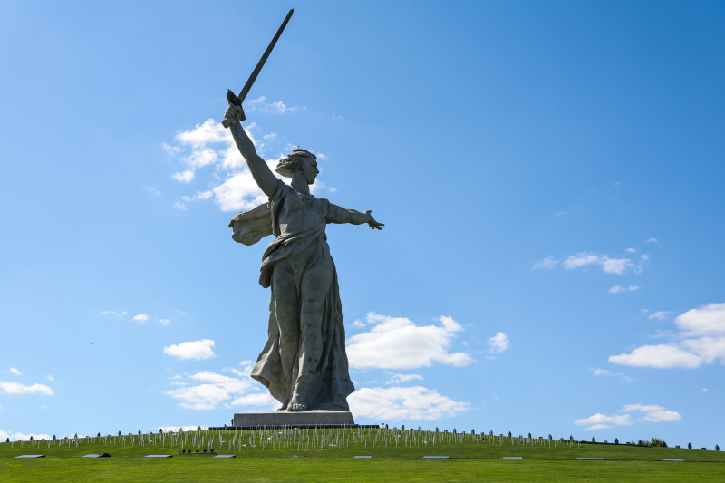 Памятник "Родина-мать зовёт!" - один из самых известных монументов периода СССР. По требованию Никиты Хрущёва его увеличили в несколько раз по сравнению с первоначальным проектом, в результате чего скульптура стала не только самой большой в Советском Союзе, но даже обогнала по высоте знаменитую статую Свободы в Нью-Йорке, если замерять от пьедестала до острия меча.