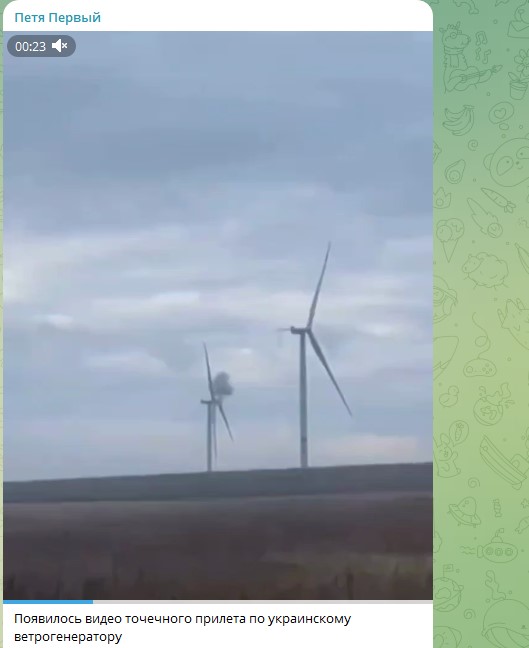 Точечный удар по ветрогенератору. Скриншот: Telegram/"Петя Первый"
