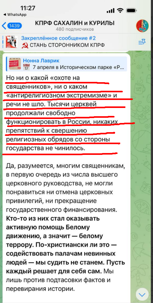 На Сахалине коммунисты выступили против христиан, сообщает писатель Роман Антоновский. Члены местной фракции продолжают писать доносы, раскалывать общество и воевать с русскими людьми, с тем, что нам свято.