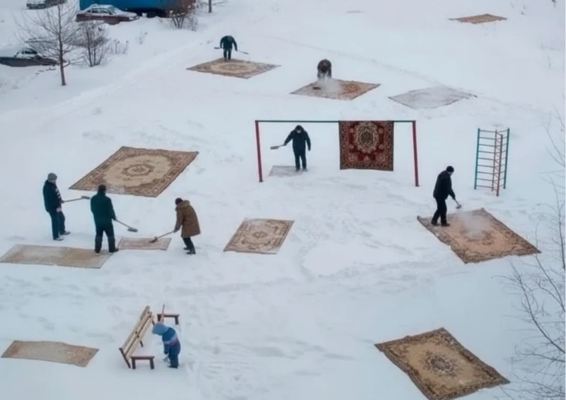 Советский ковёр имел свой уникальный цикл ухода. Его регулярно чистили пылесосом, периодически выбивали на дворовой перекладине специальной ротанговой или пластиковой выбивалкой. А зимой устраивали ковру "снежную баню". В химчистку отдавали крайне редко.